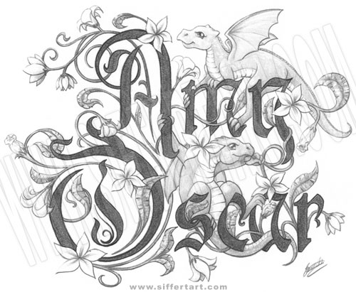 Eis alguns dos desenhos para tatuagem que fiz sob encomenda. (Para mais informações sobre encomendas de design de tatuagem, veja a seção Encomendas.) Atenção: Todas as imagens nestas galerias são de autoria da artista E. D. Siffert, foram feitas sob encomenda e não devem ser utilizadas de forma alguma sem prévia autorização. |