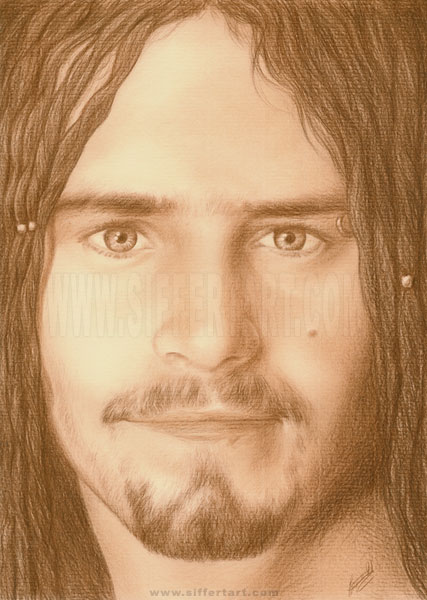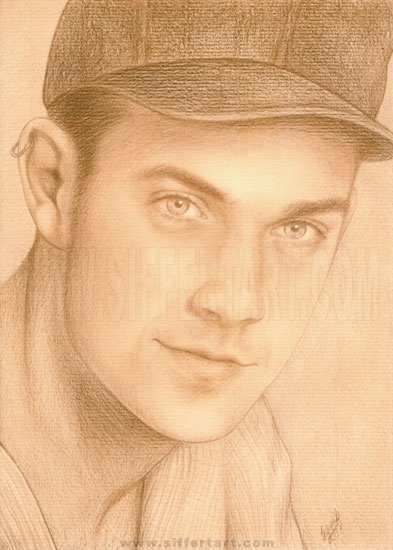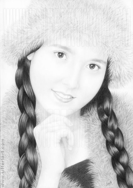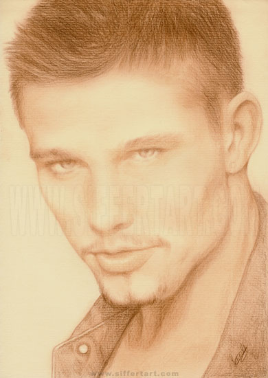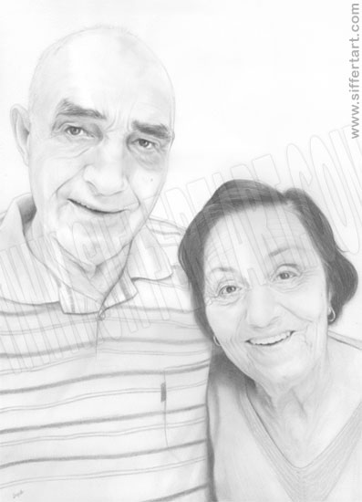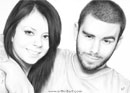 Desenhos e pinturas de pessoas reais, feitos usando fotos como referência.